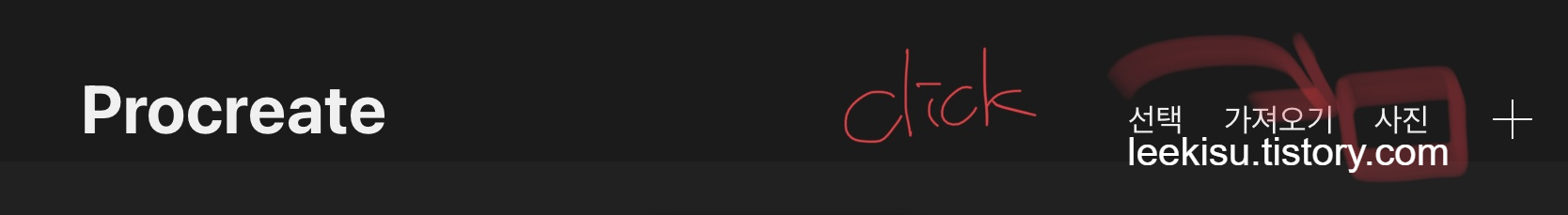 먼저 Procreate 앱을 실행해 주세요. 우측 상단에 있는 '사진'이라는 메뉴를 선택해 주세요.